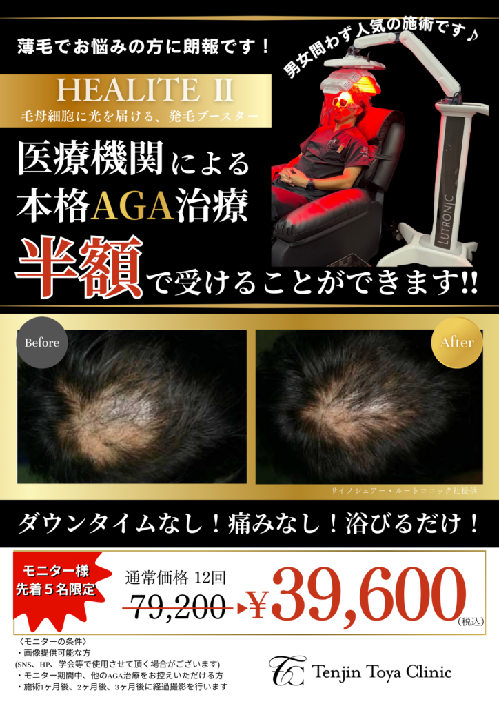 現在、AGA治療モニター様を先着5名限定で募集しています。