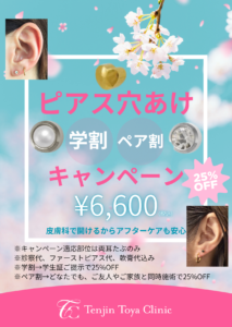 通常価格¥8,800→¥6,600(税込) ファーストピアス代、診察代、軟膏代込み
